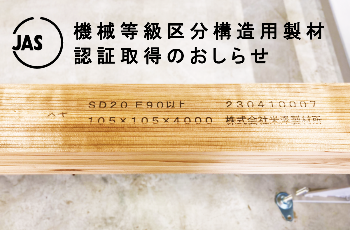 呉東地区初!「JAS機械等級区分構造用製材」の認証を取得いたしました